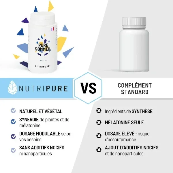 - Avec 1,9mg de mélatonine pour réduire le temps d’endormissement